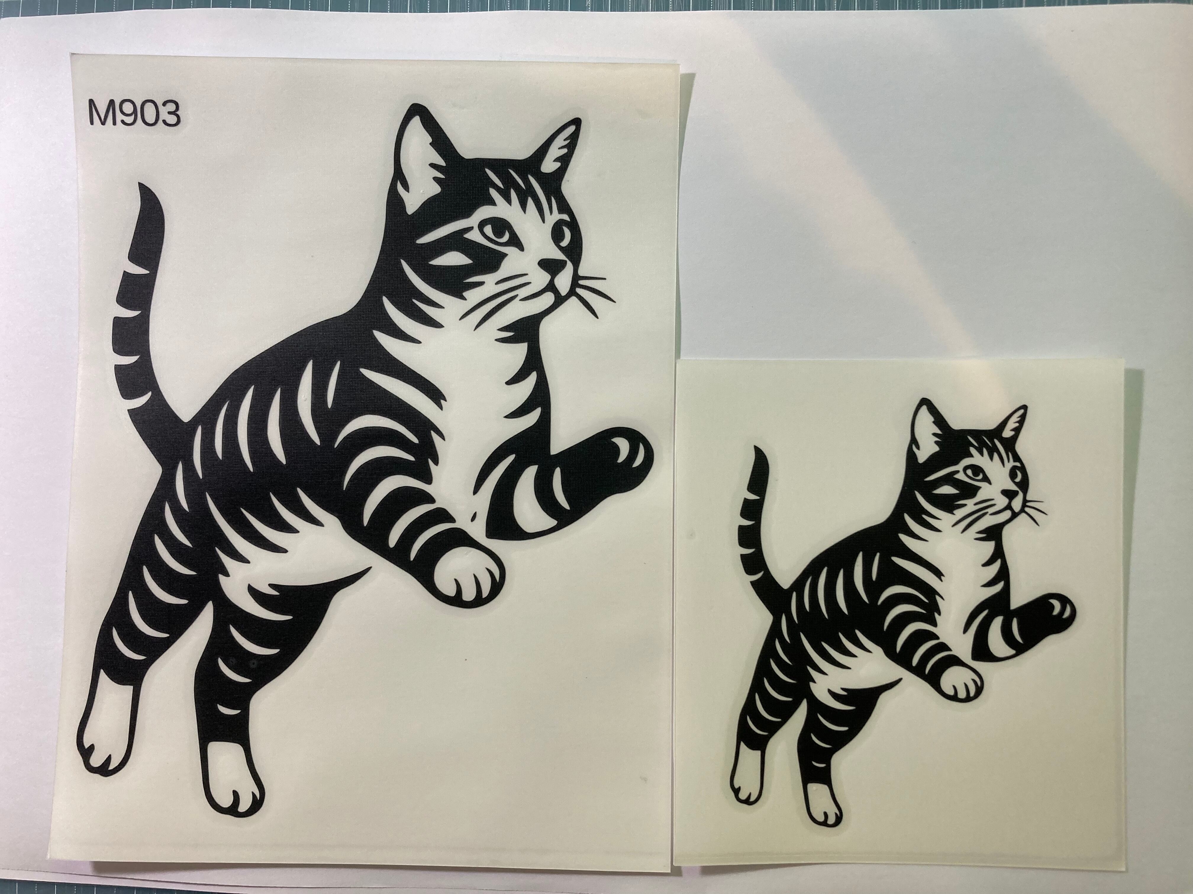 カインドストア オリジナル ねこ 猫 ネコ ステッカー シール カッティングステッカー 車やバイク、スーツケース、玄関扉、冷蔵庫、野外使用にも強い 日本製 大小2個入り 飛ぶ猫 M903 | カインドストア MacBook iPhone ステッカー 作成 通販