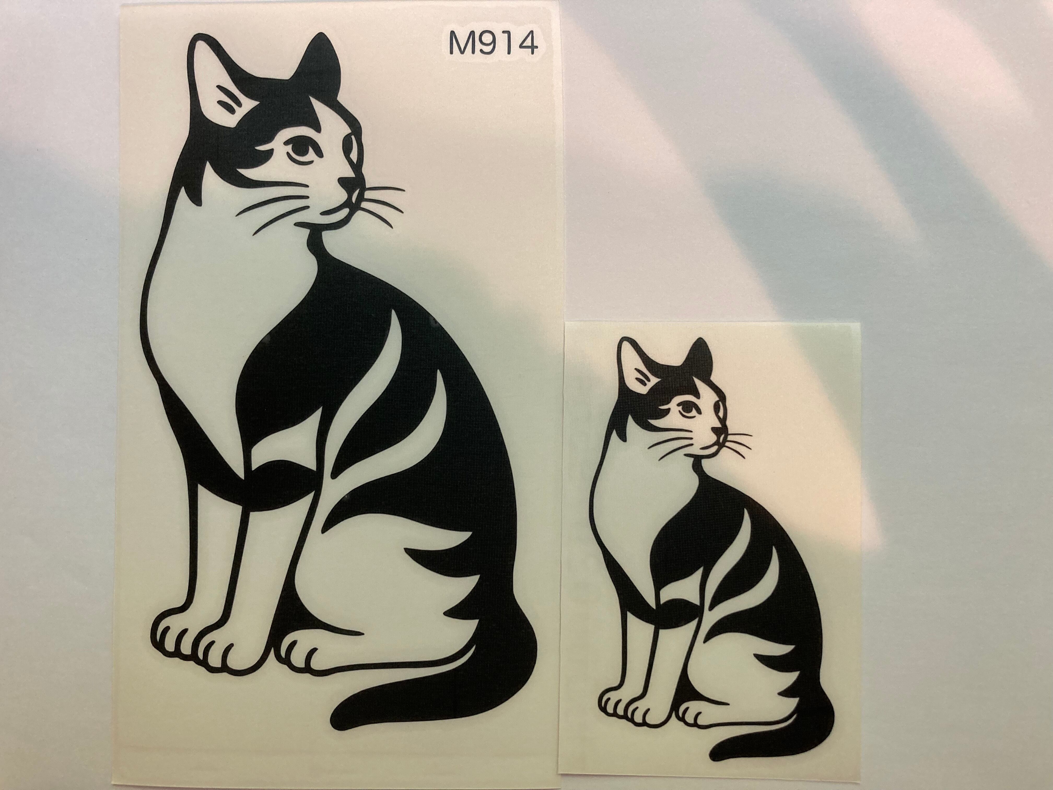 カインドストア オリジナル ねこ 猫 ネコ ステッカー シール カッティングステッカー 車やバイク、スーツケース、玄関扉、冷蔵庫、野外使用にも強い 日本製 大小2個入り 横を向く猫 M914 | カインドストア MacBook iPhone ステッカー 作成 通販