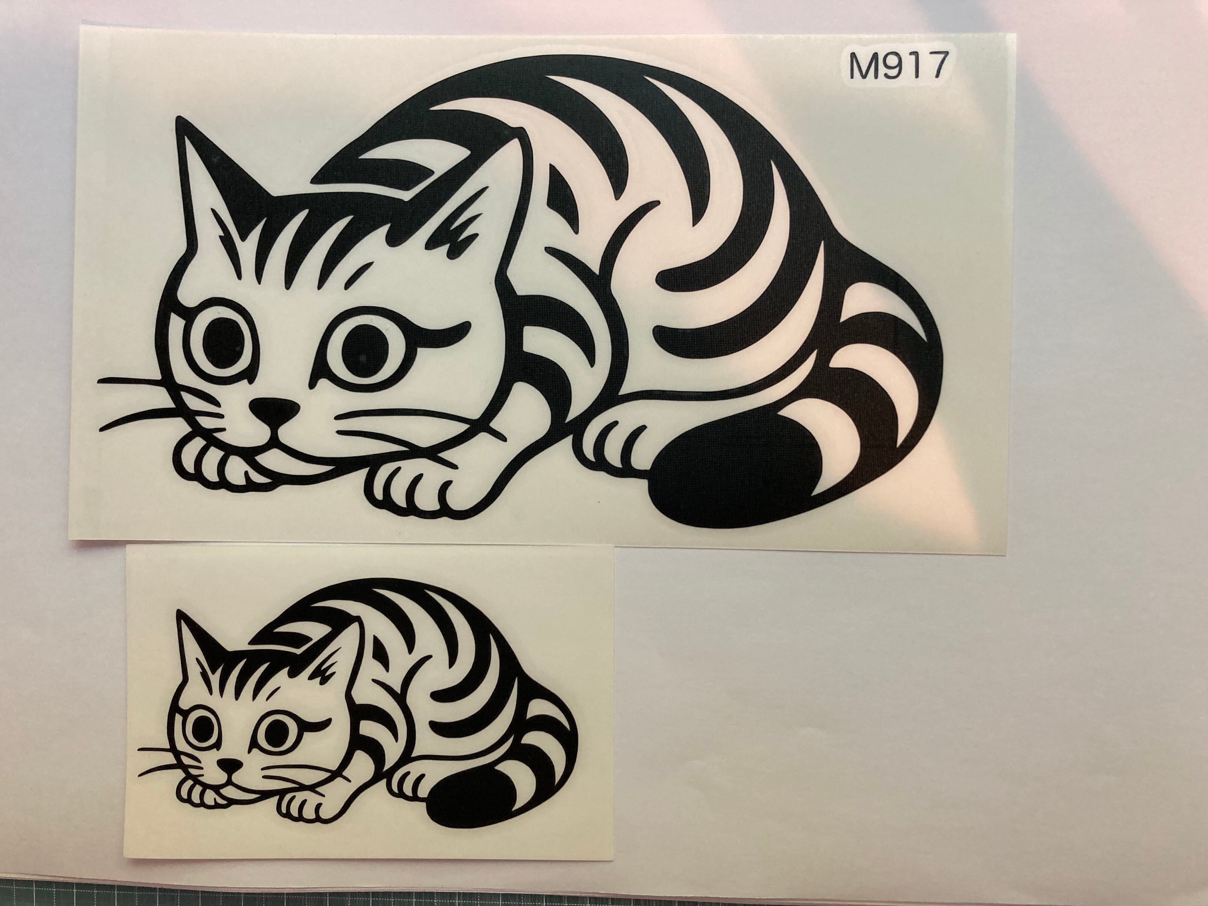 カインドストア オリジナル ねこ 猫 ネコ ステッカー シール カッティングステッカー 車やバイク、スーツケース、玄関扉、冷蔵庫、野外使用にも強い 日本製 大小2個入り まんまる目の猫 M917 | カインドストア MacBook iPhone ステッカー 作成 通販